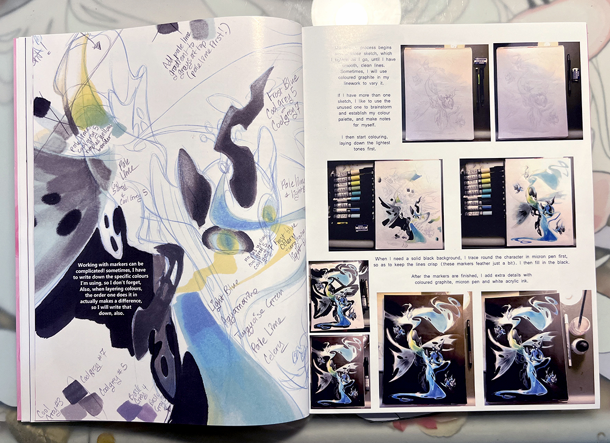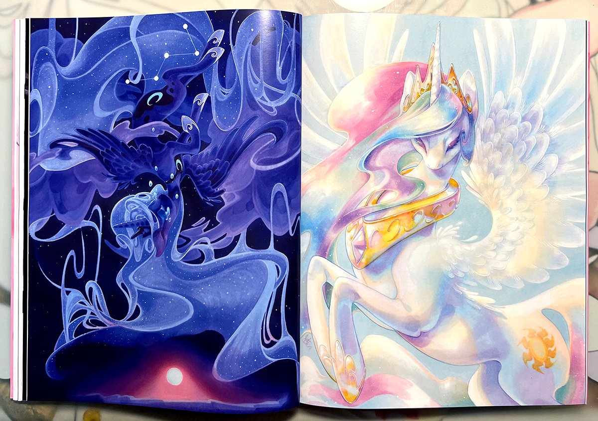 48 pages 8.5x11in full colour high quality printing on glossy paper cumuluative artwork from 2012-2023 inspired by my little pony: friendship is magic stories/artistic processes from my time in this fandom