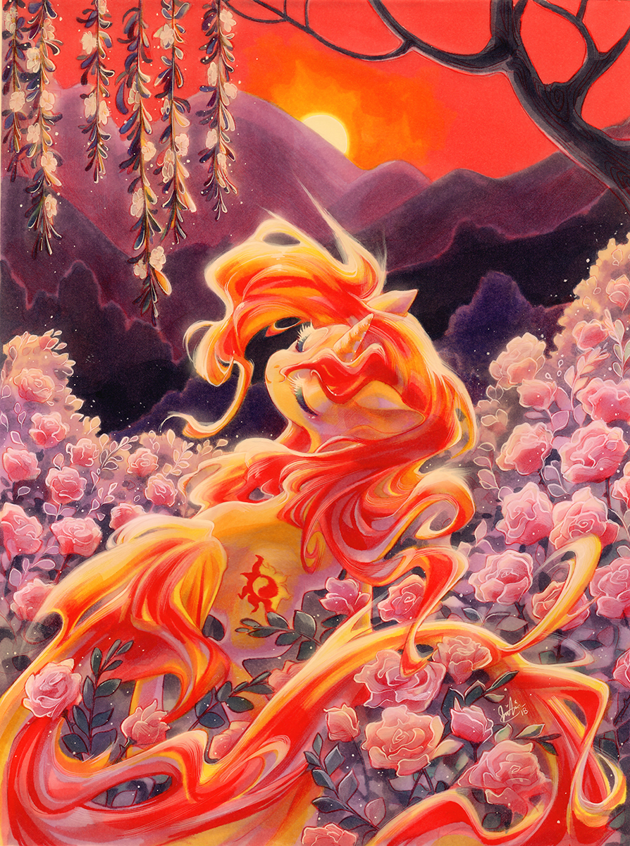original piece is drawn in marker, white acrylic ink and red pencil